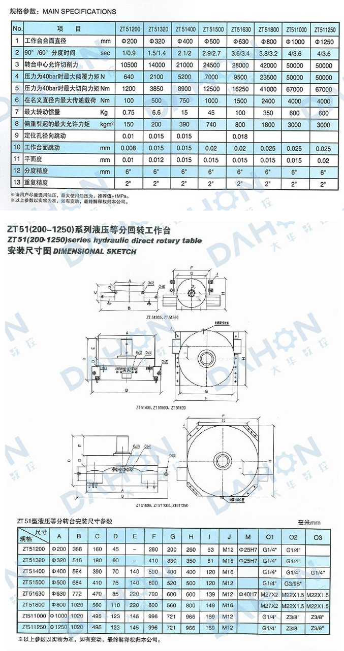 ZT 51series hydraulic direct rotary table is a kind of product which is co-produced by ourgroup and a Germancompany.The table will be at lifting position when table is-at rotation.